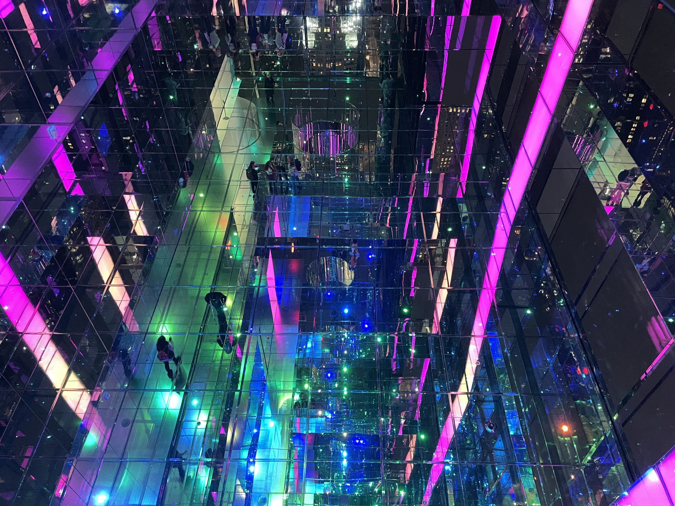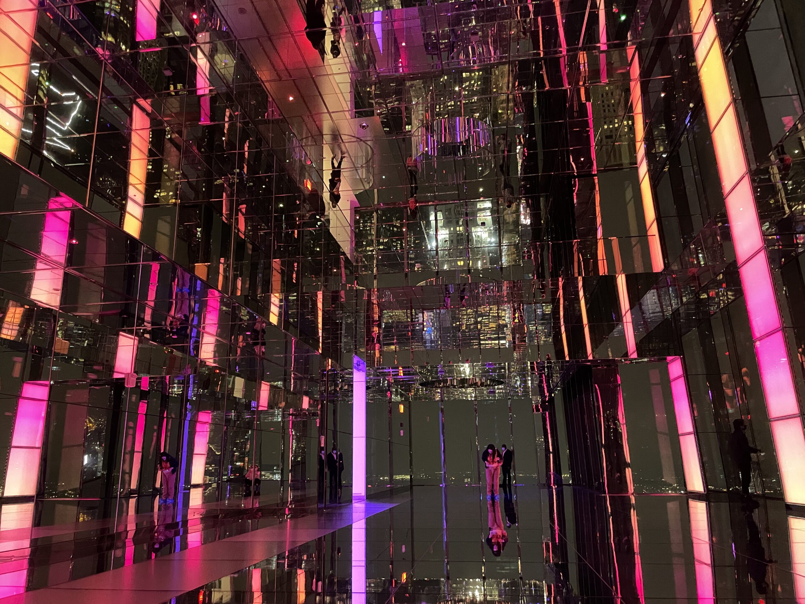 マンハッタンの夜景もこの通り。まばゆいビルの光がまた鏡に反射して360度キラキラの世界に突入です。