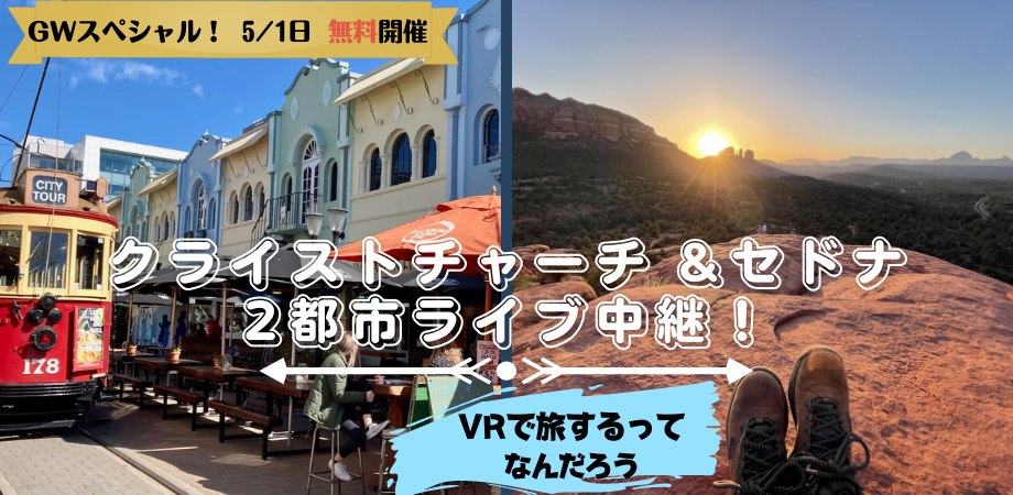 セドナの他にもグランドキャニオンハイキングや、ラスベガスの夜の街歩き、ニュージーランドからはクライストチャーチの街歩きや世界遺産アオラキ/マウントクック国立公園へのハイキングなど、おうちにいながら海外旅行の新スタイル「VRツアー」を楽しみましょう!