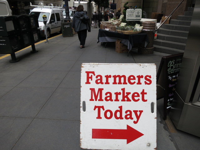 オフィスビルが立ち並ぶサンフランシスコ・ファイナンシャルディストリクトの一角で毎週木曜日に、ファーマーズ・マーケット(市場)が開催されています。